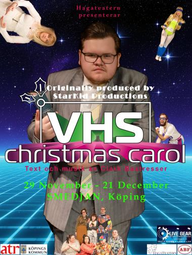 A VHS Christmas Carol av Team StarKid En julklassiker med disco ljus, skratt och 80-tals workout musik! Ebenezer Scrooge är en bitter man som hatar allt vad jul heter. Men när tre mystiska andar tar honom på en tidsresa genom hans förflutna, nutid och framtid, börjar han se sitt liv i ett helt nytt ljus och kanske, bara kanske, finns det hopp även för honom. Med humor, musik och 80-talsnostalgi bjuder A VHS Christmas Carol på en fartfylld och hjärtevärmande julshow för hela familjen.