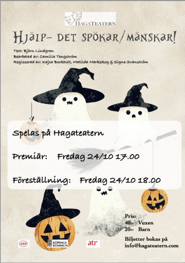 "Hjälp- det spökar/mänskar!! Människor är rädda för spöken, men är spöken rädda för människor ? Följ med på en lagom läskig pjäs där man får följa en människo familj Gransten och en spök familj Gravsten och lära sig vad dem egentligen är rädda för.