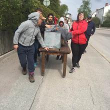 Den 3 maj var vi på en liten kortturné nästgårds till Köpings bibliotek. Så nära att vi kunde packa den miljövänliga turnébussen och ta oss dit till fots. Det var Bibblan som ordnade bokfrukost och temat för dagen var Teater. Vi spelade och berättade om arbetet med Utvandrarna.