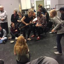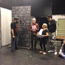 En fredag i april samlade vi alla gästskådespelare för att testa två scener i första akten - scenen där Karl Oskar upptäcker att i Danjels hem har det flyttat in fattighjon, tiggare och dömda mördare.  Morbror Danjel har fått en uppenbarelse och blivit en predikant för de ofrälsta. Den andra scenen var när Danjels församling blir utkastade ur kyrkan och inte tillåts att ta nattvarden. Spännade att testa scenerna med rätt person på plats.