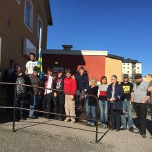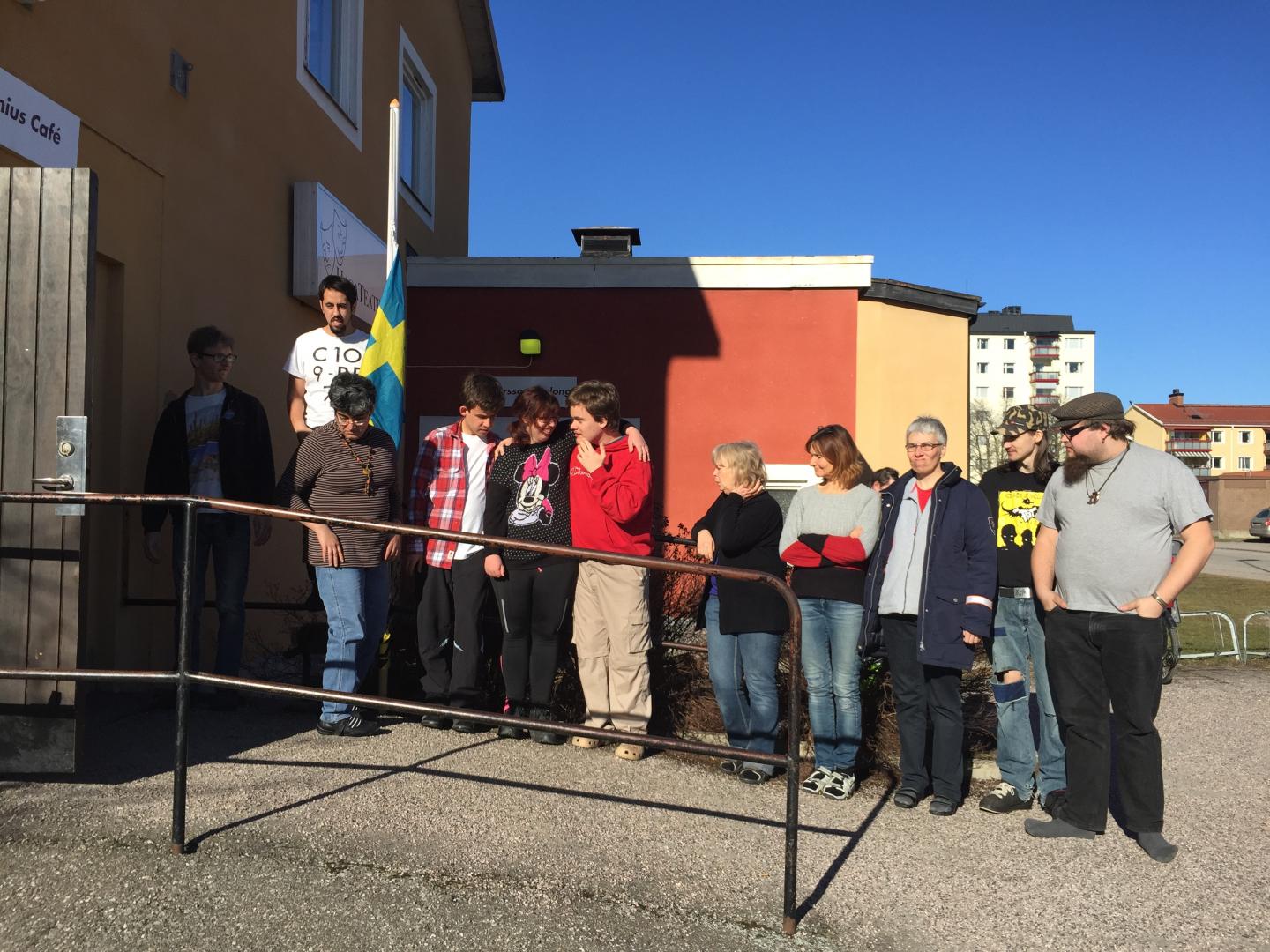 En dag med sol passar vi på att läsa texten utomhus i solskenet. Annars håller vi oss inne i den svarta salogen och arbetar med att hitta vår form på historien. Scenerier, övergångar och scenlösningar börjar växa fram.