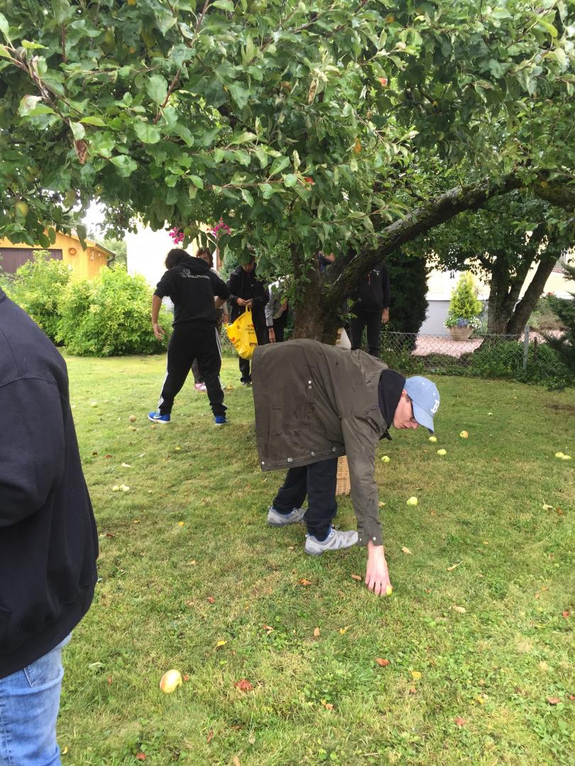 Vi började höstterminen med att plocka lite äpplen i närliggande trädgårdar. Istället för eftermiddagsfika äter vi alltid frukt på fredagar. Efter att ha lagt ut en blänkare på Facebook om att Änglarna gärna tar emot frukt fck vi massor av napp så de första veckorna tog vi lite promenader och hjälptes åt att plocka lite äpplen. Snart var halva teaterns källarförråd fyllda med äpplen.