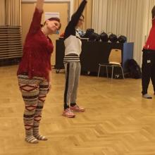Så var det dags att jobba med Susan igen. Denna gång var vi i Kulturskolans lokaler i gamla Folkets park. Först uppvärming med alla så fokuserade vi på Idlaflicksdansen till Ljuva 60-tal. Flera av våra gästskådespelare var med denna dag - Lasse, Åse, Rigmor, Helena och Mikael "Truck".