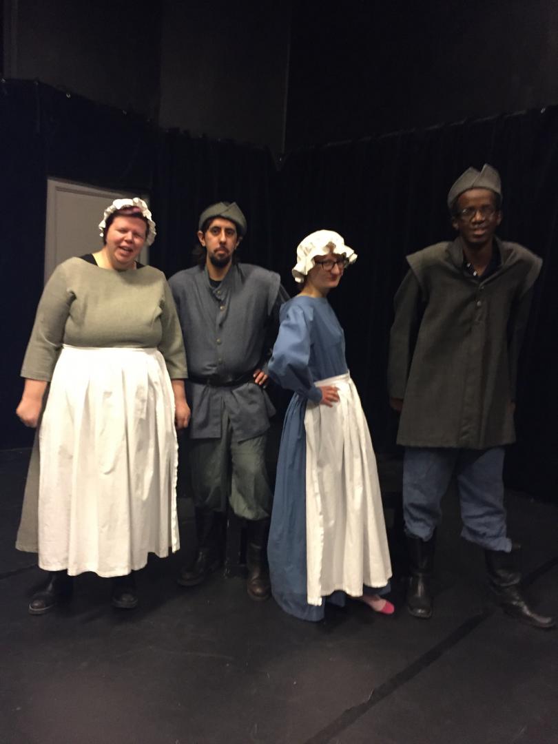 Så provar vi kostym till nästa scen ur stadsvandringen. Vi har nu förflyttats oss till 1700 talets Köping och Toras krog. Här förlustar sig stadens innevånare enda tills koungen utfärdar ett förbud mot hembränning och plötsligt vill införa Sveriges första systembolag - nu äre inte bara ölen som jäser utan folkets ilska pyr.....