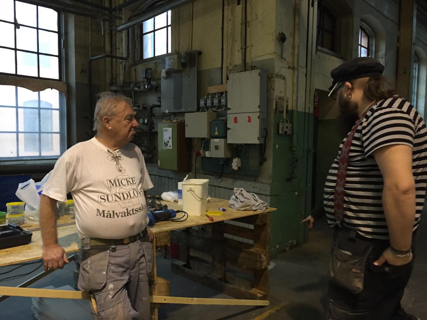 Nere i KMV lokalen har det under februari och marsmånad varit febril aktivitet. Två av Änglarna Kim och Johan har under ledning av Kent Niklasson byggt vår scenografi. Ett fantastiskt arbete har de lagt ner på detta. 1 april stod den klar och vi provade den. Nu står den i KMV i väntan på frakt till Forumteatern.