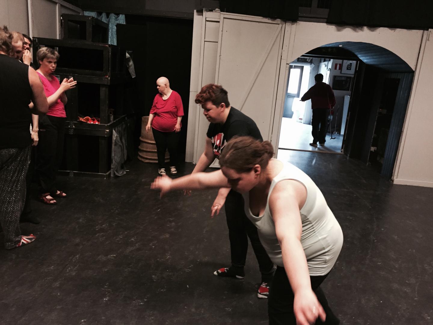 Vi fick även besök av Susan som under tre torsdagar i juni jobbade med dans både i uppvärming och som koreografi till en av våra rövardanser - Darum. Sofie "Ronja" och Herman "Birk" fick lite privatträning med både balans, kroppshållning, springa efter en bana, kordinationsträning m.m. Mellan de svettiga passen hann vi även med att fira Petra som fyllt 50 år.