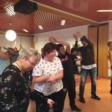 Två fredags eftermiddagar har vi varit på Tunadal och dansat Zumba. Det var dagcenter som ordnade aktiviteten och den var öppen för alla dagliga verksamhetsgrupper. Ledaren som i höll i det var helt suverän och vi dansade så svetten lackade och taket lyfte.