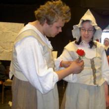 Lasse Maja (Kim) smickrar pigan Hilda (Sofie)