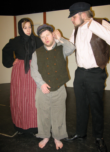 Denna vecka jobbade vi på torsdagen med tvätterskescenen samt blandat praktiskt arbete i små grupper. Vi hann både jobba praktiskt kring stadsvandringen samt hjälpa Hagateaterns ungdomsgrupp som i helgen skulle ha premiär för sin pjäs Jösses flickor. Fredagen ägnades åt helt åt forskande kring arbete med Malakiasföreställningen.