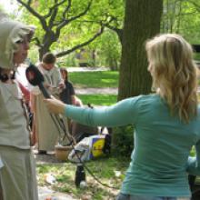 Denna torsdag tillbringade vi hela dagen på Gammelgården med undantag för lunchen som avnjutades på Hagateatern. Förmiddagen ägnades åt genomdrag på hela pjäsen. Lasse, Kalle, Hanna och Linnéa var med oss denna torsdag och för Lasse var det första torsdagen utomhus på Gammelgården.