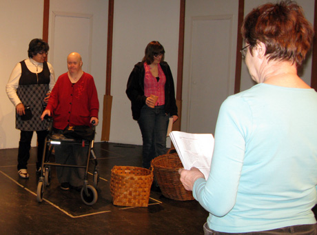 Vår hjälpledare på torsdagar Ann sufflerar. Mia är med oss för andra gången efter att ha legat på lassarettet en längre tid. Så roligt att hon är med igen.