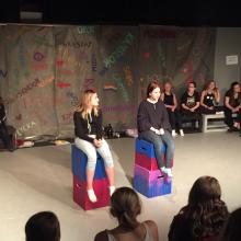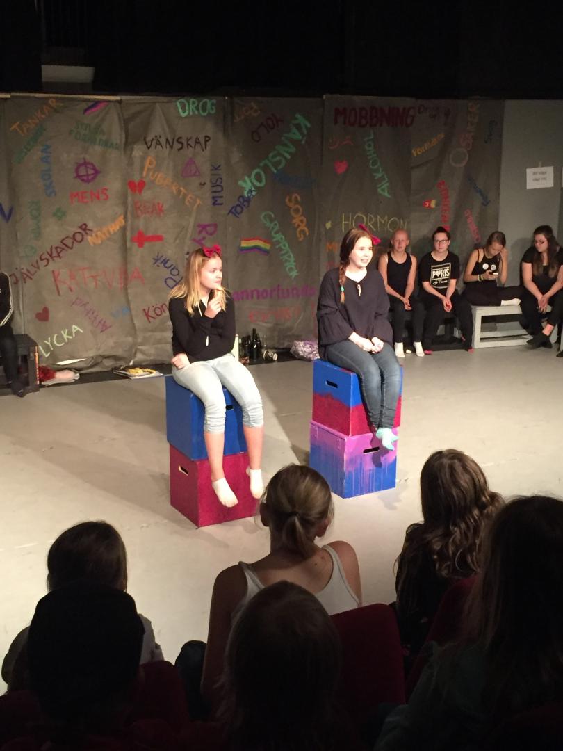 Sketcher och allvar om ungdomarnas egna funderingar kring här och nu och framtiden. Eget och andras material. Spelas i en rasande fart.