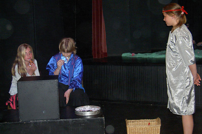 Teaterskolan 10-12 år, grupp "Vi på scen". En föreställning om pinsamheter, vänskap i olika tidsepokrar.