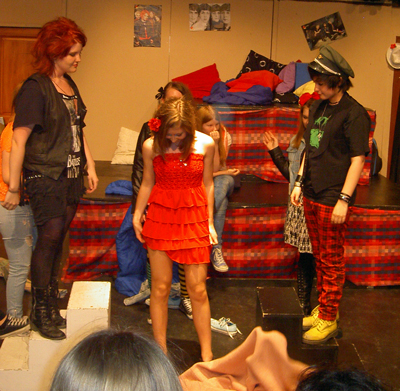 En annorlunda tolkning av den gamla klassikern, där tjejerna och killarna istället slåss om tider i replokalen. Föreställningen gavs av teaterskolegruppen Rena Rama Nånting (13-16 år).