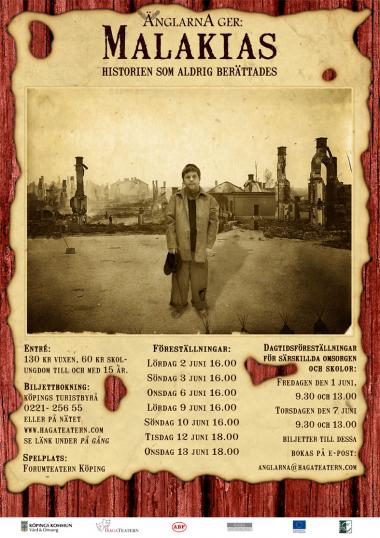En föreställning om den 10 årige Köpingspojken Malakias som 1889 blev anklagad och dömd för den brand som ödelade stora delar av Köpings centrum. Föreställningen visade hela Malakias liv från när hans föräldrar möttes. Hans turbulenta barndom med en försupen far och elak styvmor. Tiden vid branden. Hans sju år på ungdomsvårdsanstalten Hall. Hans vuxna liv med kärlek, frälsingsarmén och familj till att han avled i en ålder av 82.
