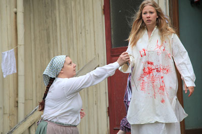 I den andra scenen, nere på Nyströmskagården flyttade vi oss till slutet av 1700-talet där en dramatisk scen visades då en kvinna begick ett mord på sin man.