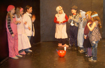 Teaterskolegruppen "Enhörningarna" gav föreställningen Aladdin, den gamla sagan ur Tusen och en natt. Deltagarna i gruppen är mellan 7 och 10 år gamla. Pjäsen handlar om en lat och utfattig yngling vid namn Aladdin, som rekryteras av en trollkarl för att hämta en oljelampa från en magisk grotta fylld med fällor.....